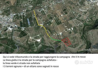 Ho inserito una mappa satellitare con una linea gialla che indica la strada per raggiungere il terreno partendo dalla strada provinciale Augusta- Villasmundo.