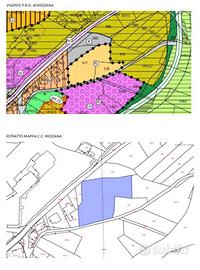 La suddivisione del terreno p.f. 576 e 577 consiste in 2200 mq. C.I. area commerciale integrata, 347 mq. Bd. residenziale di completamento, zona "D" e infine 1639 mq. P.P. destinata ai parcheggi per un totale di 4186 mq.