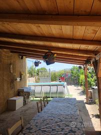 open space in cui è presente una cucina e un salotto, 2 camere da letto, un bagno, spiazzale con tettoia in legno, garage e magazzino. La casa è in vendita già arredata così come in foto.
