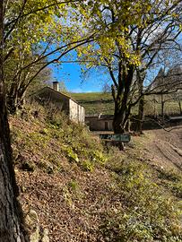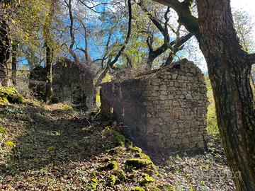 Terreno con 2 case già rimaneggiate e altre 3 ruderi tutti in roccia. Terreno a bosco ci 185000 metri quadrati, con attrezzatura trattore e terna . Bosco di faggi e abeti.