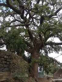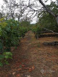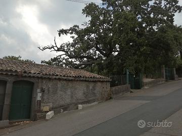 Terreno di 5000 mq circa completamente recintato e coltivato a vigneto e alberi da frutto: ciliegie, mele, prugne, pesche, mele cotogne, mandorle e castagne. Fabbricato di 50 mq adibito parzialmente a palmento con spazi abitabili, con stanza soppalcata, dotato di acqua potabile, pannello solare per l'energia elettrica e bagno . Ampio spazio esterno cementato con tavolo in pietra antica e sedili vari. All'ingresso della proprietà è presente un albero secolare di quercia (la circonferenza del tronco misura 4 metri circa) che copre lo spazio esterno. Possibilità di accesso e parcheggio all'interno della proprietà.