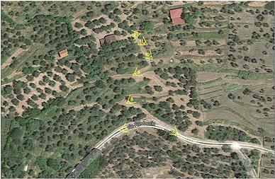 Strada di accesso di proprietà, con sbarra, che sbocca nella strada comunale asfaltata. Attualmente è considerato terreno agricolo.