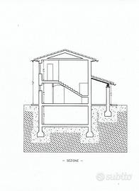 Il progetto prevede la realizzazione di un casale di 150 mq su due livelli e un piano interrato adibito a garage e cantina.