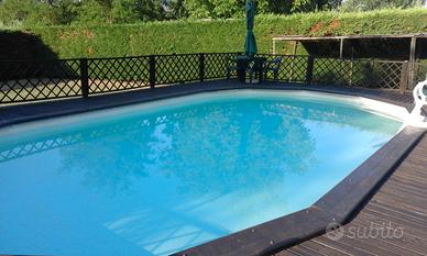 Terreno disponibile anche per l'affitto di 1400 mq. in loc. Frassineto nel Comune di Arezzo interamente recintato con rete metallica e siepe perimetrale, cancello carrabile e pedonale, all'interno vi è una piscina fuori terra ml.8x5 con ampio camminamento e parapetto in legno, pozzo artesiano di metri 50, fornitura ENEL 3 Kw e una roulotte in buone condizioni con 4 posti letto, cucina e bagno con fossa biologica, sono presenti varie attrezzature per la piscina e per il giardino fra cui 12 lettini prendisole e trattorino tagliaerba, vi è anche un parcheggio per 2 posti auto al coperto e una piazzola in cemento di ml.6,50 x 4,50.