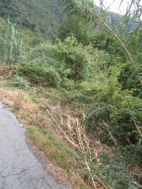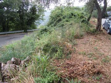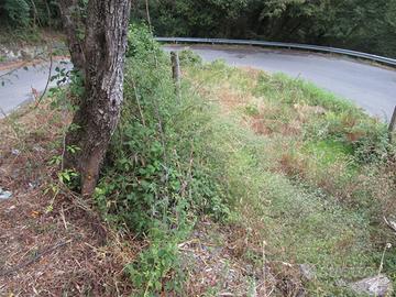 Terreno con tre particelle catastali, la porzione sopra la strada da adibire a parcheggio è circa 230 mq, le restanti due rimangono sotto la strada principale e sono bosco/uliveto.