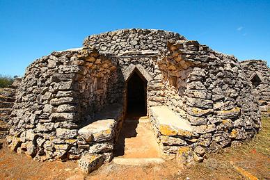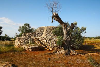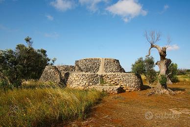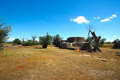PARABITA: Contrada Barbuglia in zona panoramica si vende terreno agricolo di circa 2600 mq, edificabile secondo la normativa vigente, con due antichi trulli di circa 80 mq ed una cisterna in muratura. Il terreno è delimitato da muri in pietra a secco allo stato originario.