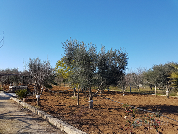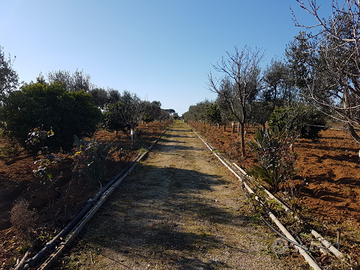 Vendo terreno di circa 7000 mq situato nel Comune di Tuglie, contrada "Li Monaci di sotto"( zona bassa di Tuglie) N.17 di recente assegnazione. Terreno recintato con 75 ulivi e frutti vari e delle bellissime palme.