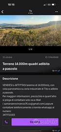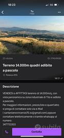 Vendesi o Affittasi terreno di 14.000mq , con vista panoramica su zona industriale di Tito, adibito a pascolo o x costruzione. Per informazioni o altro contattare al 347-7733303 , o via email " santarsierovincenzo76.sv@ Gmail.com