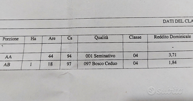 Si propone in vendita nel comune di Postiglione, a soli 4 km dall'uscita autostradale di Contursi Terme, terreno agricolo (seminativo e bosco ceduo) per totali 16400 mq. Il terreno è fronte strada comunale asfaltata con doppio accesso direttamente dalla strada, risulta comodo da lavorare, con una leggera pendenza e si presta a svariate attività agricole e non. Attualmente allo stato di abbandono. Libero da subito. Ottimo investimento.