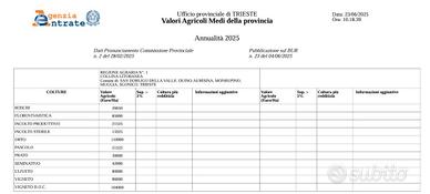 Terreno di 52.204 metri quadri in via Suppan, comune di Trieste costituito da bosco e prato, presenti a catasto 1,5 ettari di vigneto anche su terrazzamenti e la restante parte bosco.