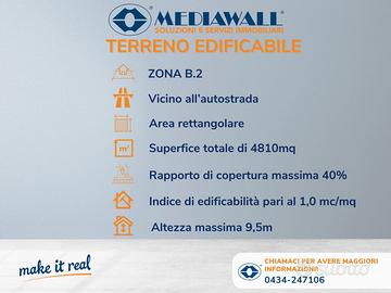 (Riferimento: BP-075-NV) PRATURLONE DI FIUME VENETO (Rif. BP-075-NV) SOLEGGIATO TERRENO EDIFICABILE IN ZONA B.2 In zona residenziale vicino all'accesso autostradale, disponiamo di un ampio e soleggiato lotto edificabile di forma rettangolare, sul quale potrai costruire la casa dei tuoi sogni o un complesso residenziale: - Superficie totale di 4810 MQ; - 2200 mq edificabili; - indice di edificabilità pari a 1,0 mc/mq; - rapporto di copertura massima 40%; - altezza massima 9,50 E' possibile concordare l'acquisto di una porzione di lotto. Contattaci per più informazioni!