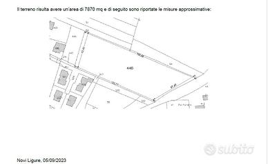 Vendo terreno edificabile pianeggiante in FRANCAVILLA BISIO (AL) tra Novi Ligure - Gavi - Capriata d'Orba. Mq. 7870 (misure in foto) allegata possibilità di costruire 6 lotti per villette o un capannone