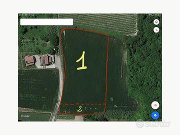 L'area edificabile è di circa 5350 mq (contrassegnata con "1"), con annessa area servizi (non edificabile) adiacente di circa 1000 mq (contrassegnata con "2").