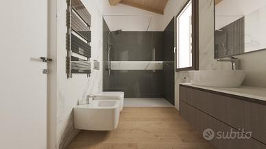 Sala da bagno ampia con box doccia.