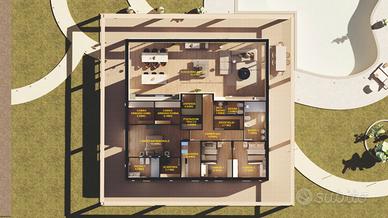 Il terreno ha una destinazione d'uso residenziale e consente l'edificazione di un fabbricato di 200 mq. Il fabbricato potrebbe essere simile a quello del progetto allegato, che è composto da: