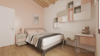 Il disimpegno a T conduce alle camere da letto e ai servizi. Le due camere singole sono grandi e regolari, con un'ampia finestra ciascuna. La stireria/lavanderia è separata dalla zona giorno per una maggiore privacy. La suite matrimoniale è composta da due camere da letto, una scarpiera e due cabine armadio.