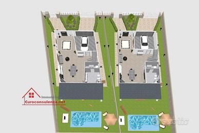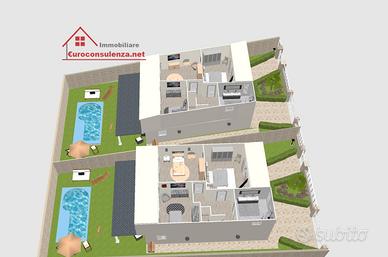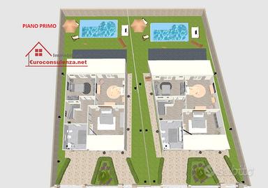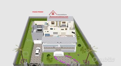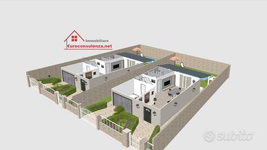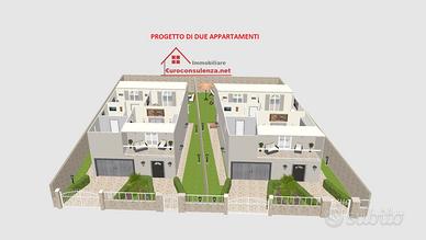 In alternativa il lotto si potrebbe frazionare in 2 lotti piu' piccoli di circa 335 metri quadri, consentendo la costruzione di due unità abitative indipendenti, ciascuna composta da: piano terra di 100 mq adibito alla zona giorno con ingresso, ampio open space, cucina con angolo cottura, bagno e box auto con accesso diretto all'abitazione, piano primo di altri 100 mq potrebbe essere adibito alla zona notte con 3 camere da letto ciascuna dotata di balcone privato oltre ad un ampio bagno, per un totale di 200 mq per appartamento.