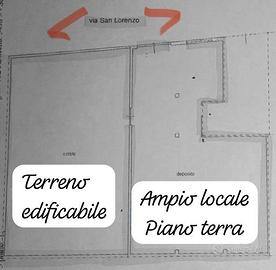 La proprietà in vendita è composta da un ampio terreno edificabile e da un altrettanto ampio e attiguo immobile che occupa parte del piano terra di un edificio in cemento armato di un solo piano, con 2 appartamenti al piano superiore e attività commerciali sull'altro lato del piano inferiore.
