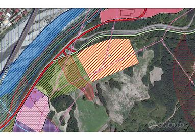 Sul terreno insistono alcuni vincoli: elettrodotto Terna, vicinanza strade e pertinenza di rispetto fiume. Proprio per questo motivo per un impianto fotovoltaico potrebbe ridursi la superficie utilizzabile.