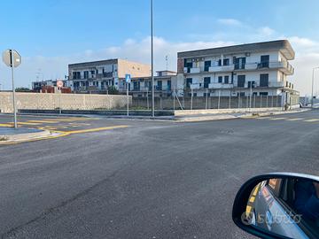Il terreno affaccia su strada principale e traversa, completo di marciapiedi e muretto di recinzione.