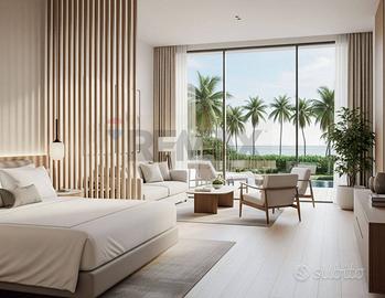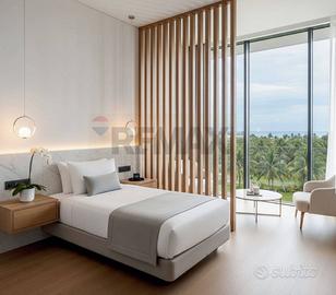 01 LPRIMA OPZIONE progettuale è un Resort con unimportante disponibilità di cubatura edificabile per la possibile realizzazione di una struttura ricettività da 14 suite da 33 mq, pensate per ospitare fino a quattro persone, e 80 camere da 22 mq per uso singolo o doppio, tutte caratterizzate da interni moderni, oltre altri spazi e servizi dedicati allaccoglienza e al benessere