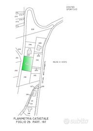 Lotto edificabile di 1220 mq , bellissima posizione panoramica in pendenza, all'interno di una zona già urbanizzata ( allaccio fognatura comunale, acquedotto comunale , elettricità, gas, telefono ecc ). Indice di edificabilità 0,7 mc/mq, ideale per realizzare una villa singola da 280 mq. di superfice calpestabile su due livelli o bifamiliare da 140 mq cadauna