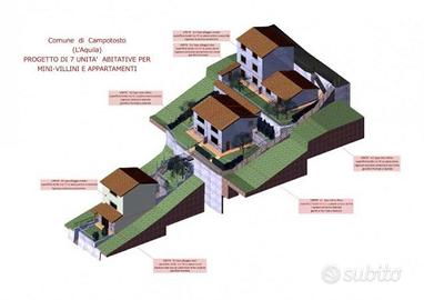 vendesi lotto con permesso di costruire e progetto approvato per residence da sette unita' edilizie (piccoli appartamenti e mini-villini per vacanze) nel centro abitato di campotosto in abruzzo.