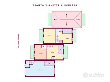 Possibilità di realizzare quattro villette a schiera su tre elevazioni dalla superficie coperta complessiva di circa 150 m² ciascuna e composte da soggiorno, cucina, due vani e tre servizi igienici, o in alternativa di realizzare sei appartamenti di circa 80 m² ciascuno con locali garage seminterrati e composti da cucina/soggiorno, tre vani, servizio igienico e lavanderia.