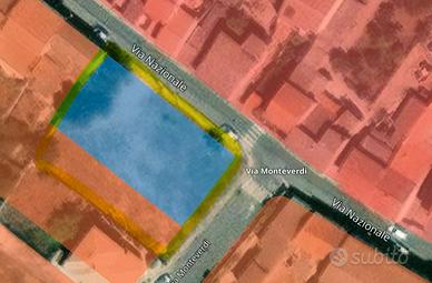 In vendita terreno edificabile zona B2 di 400 mq in Terralba, angolo tra via Monteverdi e via Nazionale.