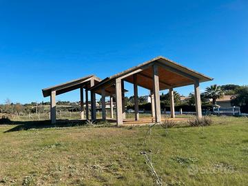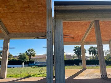 E' presente un edificio con superficie di 200 m2 in fase di costruzione, realizzato in modo da essere perfettamente divisibile in due, come è possibile evincere dalle immagini.