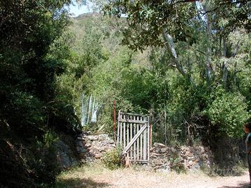 Sul terreno ci sono due piccole strutture in pietra diroccate che erano per i maiali, più una vasca tra le pietre con l'acqua. Il terreno è costituito da macchia mediterranea.