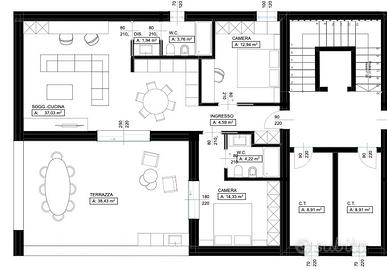 o 2 bilocali da 113 m², entrambi dotati di grande terrazza coperta da 38 m²