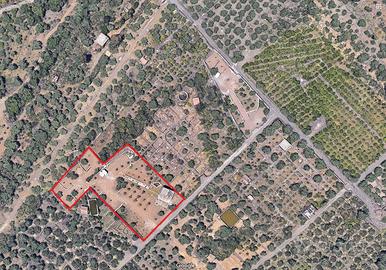 L'interno del terreno si trovano diversi alberi di ulivo, fichi d'india e sono presenti muretti a secco tradizionali.
