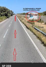 IL TERRENO (E RIPETO NON E' EDIFICABILE) SI TROVA A RIDOSSO DELLA S.P. 359 HA 2 ACCESSI 1 DI FRONTE ALL' INGRESSO DEL VILLAGGIO EUROVILLAGE E L' ALTRO A 100 MT. PIU AVANTI.