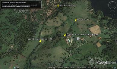 Terreno panoramico immerso in una fitta cornice di macchia mediterranea e boschi di sughereto,150 mt. circa fronte lago del Liscia(emergente zona turistica, conosciuta per gli uliveti millenari, vigneti di vermentino, ed escursioni in battello)e, confinante con un hotel-ristorante. Il terreno è di 13.50 ettari. Nel terreno vi è presente linea elettrica-telefonica e acqua proveniente da diverse sorgenti. Può essere accessibile da due parti ed è ubicato a circa 25 minuti da Olbia e 45 dalla Costa Smeralda.