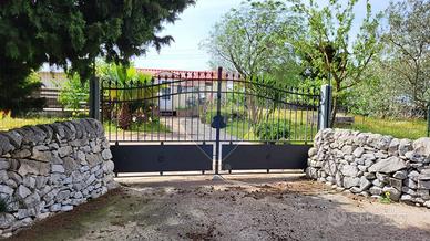 Completamente recintato ha un cancello d'ingresso in ferro lavorato e diversi alberi da frutto.