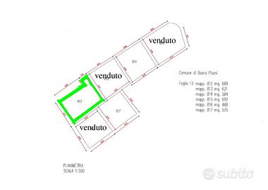 BOARA PISANI in lottizzazione residenziale completamente urbanizzata, adiacente alla sede del Comune e a tutti i servizi locali, a breve distanza dal casello autostradale di Rovigo Nord, proponiamo in vendita lotto residenziale di mq. 690,00 con volume urbanistico realizzabile di 1.277 mc. edificabile per bifamiliare - quadrifamiliare. In planimetria lotto 812. Euro 70.000 + IVA. Rif. 11134