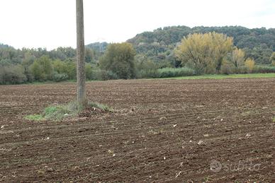 Il terreno concesso in affitto - con regolare contratto- a Civita Castellana Foglio 21. Superficie coltivabile 11 ettari. Disposto per la maggior parte lungo il Fiume Treia umido e facilmente coltivabile,tutto in piano. Per il resto (come si vede nella foto seminata a semi di lino) in pendenza con fonte sorgiva naturale che fornisce acqua abbondante e facilmente fruibile già incanalata e con vasca di raccolta. Di questa superficie 1 ettaro è già dotata di impianto di irrigazione. Possibilità di richiedere in provincia (VT) permesso attingimento acque dal Fiume Treia.