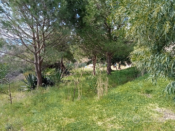 Lotto di 1270 mq, recintato con autorizzazione, con diversi tipi di alberi e una roulotte.