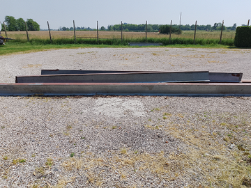 Vendita travi in ferro 10 metri ,220 euro a trave . vendita enternit (no amianto ), euro 30 euro cadauno ,totale 20. Vendita grondaie varie misure di lunghezza 450 euro