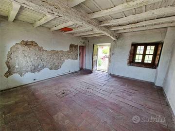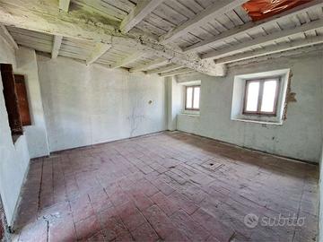 Al piano terra troviamo un ampio soggiorno con camino, collegato a una stanza che può essere trasformata, ad esempio, in un bagno con camera da letto; attraverso il porticato si accede a una terza stanza, ideale per diventare cucina, lavanderia o unulteriore camera. Ogni ambiente ha ingressi indipendenti, offrendo grande flessibilità negli usi e nelle ristrutturazioni. Il soggiorno ospita anche un ampio sottoscala, perfetto da convertire in corridoio per connettere le varie aree.