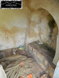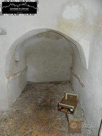 Internamente l'ambiente è impreziosito dal caratteristico cono in pietra, con un antico caminetto, la pavimentazione in pietra tipica "chianche" nell'ambiente centrale e diverse nicchie e cornici nella muratura delle alcove laterali.