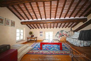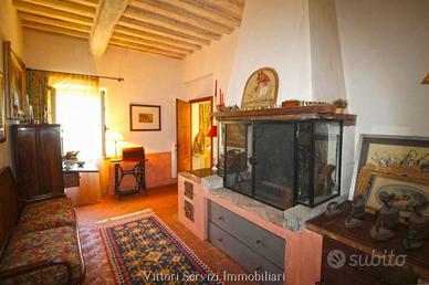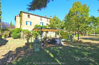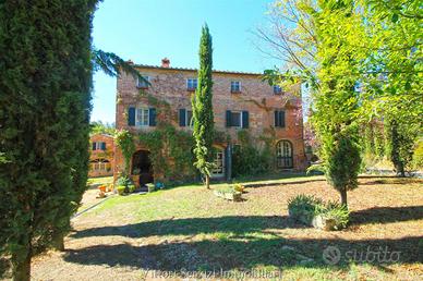 Immerso nel verde della campagna toscana, a breve distanza da Siena, si propone la vendita di casale risalente all'800 in pietra e mattoni, recentemente ristrutturato, avente una superficie complessiva di mq. 630, corredato da una dependance ad uso abitativo di mq. 190 ed annessi a vario uso per ulteriori mq. 55. Il casale si sviluppa su tre livelli, con una bellissima zona giorno al piano terreno costituita da un grande salone con caminetto, sala biliardo, cucina con dispensa e una ampio salone da pranzo, il tutto con rifiniture tipiche delle stile toscano, come la pavimentazione in cotto e i soffitti in parte a travi di legno ed in parte a volte. Ai livelli superiori (piano primo e piano mansardato) troviamo la zona notte, finemente recuperata rispettando le caratteristiche ed i materiali originari, corredata di ben 8 camere servite da 5 bagni, di cui 2 privati. Completano la proprietà spazi interni ad uso studio e sala lettura. Adiacente al casale troviamo la dependance, anch'esso un casale interamente ristrutturato nel rispetto dello stile rustico toscano, suddiviso in due trilocali con bagno, rispettivamente al piano terreno e primo, che permettono di ampliare ulteriormente i posti letto rendendo la proprietà un' interessante soluzione per la realizzazione di una struttura ricettiva. I due fabbricati principali sono circondati da un bellissimo parco, nel quale è possibile realizzare una piscina, servito da un elegante viale di accesso contornato da piante di alto fusto. L'intero complesso si completa con una proprietà terriera di circa 8,5 ettari di cui 1,7 ettari di uliveto con 300 piante in produzione, 3,3 ettari di bosco e 3,5 ettari di seminativo.