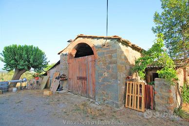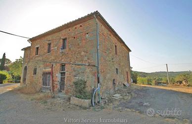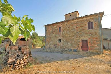 Al centro della Val di Chiana, in località Farnetella, si propone la vendita di porzione di casale in stile leopoldino di complessivi mq. 310, oltre ad annesso ad uso magazzino di mq. 80 e terreno di complessivi mq. 15.000, parte a seminativo e parte ad uliveto con circa 250 piante. Il casale presenta una struttura in pietra e mattoni ed è interamente da ristrutturare. Attualmente la proprietà è suddivisa in due unità abitative, di cui una più piccola al piano terra e una pìù grande che si sviluppa su 3 livelli (piano terra, primo e torretta al piano secondo). La proprietà è servita da energia elettrica, acquedotto ed è possibile allacciarsi alla rete del metano. Circondata dal verde, posta in posizione collinare con una bellissima vista panoramica, vicina a tutti i servizi e a soli 40 km da Siena, la proprietà rappresenta un'ottima proposta per chi è alla ricerca di una abitazione nella campagna toscana.
