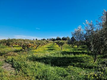 Rif.1561 - Vasto terreno agricolo in vendita a Catania in contrada Jungetto su Strada Statale 192, e più precisamente all'interno del bivio che porta al concessionario BMW e nelle immediate vicinanze del centro commerciale all'ingrosso SCARL e del mercato agroalimentare MAAS. Avente ingresso da due cancelli carrabili su ampia strada privata con accesso da sbarra automatica, ha una superficie di circa 24000 m² ed è attualmente adibito ad agrumeto, con la presenza di circa 1000 piante di arance di qualità tarocco e di circa 30 ulivi. Dispone inoltre impianto di irrigazione a pioggia ed un pozzo artesiano. Data la superficie e l'indice di edificabilità per i terreni agricoli, è possibile la realizzazione di un capannone ad uso agricolo di circa 2400 m² o, in alternativa, di due abitazioni di circa 125 m² ciascuno più eventuale piano cantinato. Il terreno è ben delimitato, pianeggiante e recintato. Ottimo contesto. Per ulteriori informazioni contatta Megara immobiliare: tel.