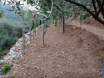 Vendo terreno di circa 5000 mq impiantato ad uliveto CV Taggiasca (circa 150 piante). Inoltre sopra ciascun muretto a secco sono presenti bellissimi filari di vite da vino. L'intera proprietà è completamente recintata con pali e rete metallica, piccola casetta ricovero attrezzi (2 m * 2 m) ed impianto di irrigazione manuale alimentato da cisterne. Direttamente accessibile con mezzi agricoli e veicoli tramite strada rurale e privata. Recentemente, il Comune di Pompeiana ha esteso l'indice di edificabilità volumetrica trasferibile su l'intero territorio comunale. Ottima proprietà in buone condizioni e in piena e buona produzione. SI ACCETTANO SOLO PERSONE REALMENTE INTERESSATE. NO PERDITEMPO. 55000 Euro trattabili.