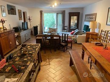 A BREVE DISTANZA DAL PAESE CARATTERISTICA PORZIONE DI COLONICA FINEMENTE RISTRUTTURATA NEL RISPETTO DEI VALORI TIPICI TOSCANI, SOLAI CON TRAVI, TRAVICELLI E PARETI ESTERNE REALIZZATE CON PIETRA FACCIA A VISTA. LA PROPRIETA' E' IMMERSA NEL VERDE E GODE DI TRANQUILLITA' E PRIVACY. L'IMMOBILE E' DI COMPLESSIVI MQ 200 CON SOGGIORNO CUCINA TRE CAMERE DA LETTO TRE SERVIZI GARAGE OLTRE MQ 130 DI TERRAZZA E MQ 3600 DI GIARDINO CLASSE ENERGETICA IN ELABORAZIONE RIF C61