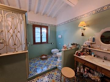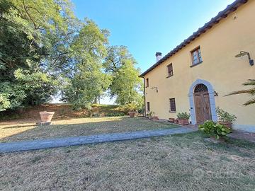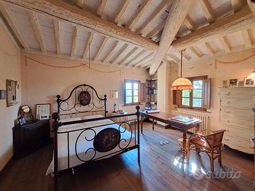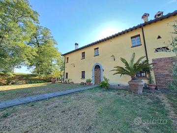 Antico casale risalente al XVII secolo, posizionato su una collina con bella vista panoramica, la proprietà in vendita è la porzione laterale di fabbricato ex villa nobiliare esposta a Sud/Est, composta al piano terra da: ingresso disimpegno da cui si accede ad un ampio studio, al grande salone con camino e cucina a vista attraverso parete ad arco, la cucina ampia con grande tavolo per i conviviali e barbecue, bagno, lavanderia, scala per il piano superiore con ampio disimpegno, grande camera padronale con camino e locale guardaroba, 3 camere e 2 bagni.
