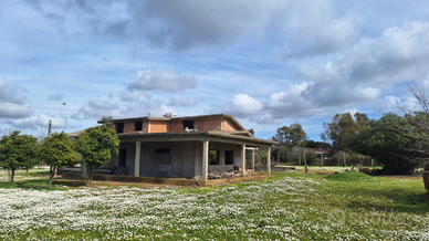 Villa a pomezia campo jemini da finire con permesso su tre livelli piano -1 scantinato piano terra 200 mq e atticco con terreno circostante di 10000 mq con uliveto