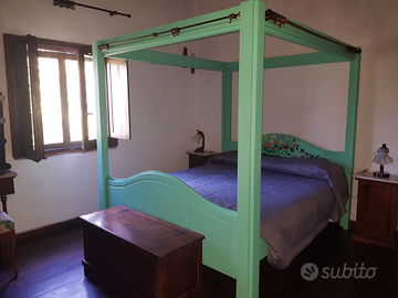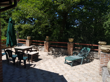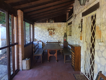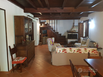 Affittasi villetta di 80 mq a due piani con giardino-terreno di circa 5000mq, la casa ha un portico coperto, un salone con angolo cottura, bagno e caminetto al piano terra, due stanze da letto ed un bagno al primo piano